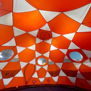 15本のポールを100カ所以上で交差させることで、天井が高く広大なドーム空間を生み出しました。
