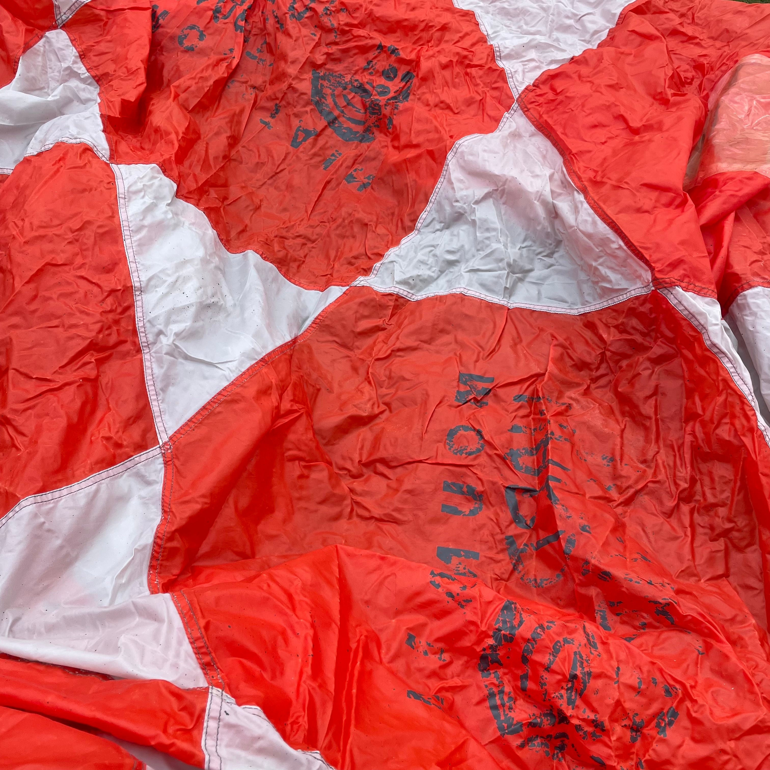 フライシートのロゴが剥がれており、それがフライシートについている状態です。