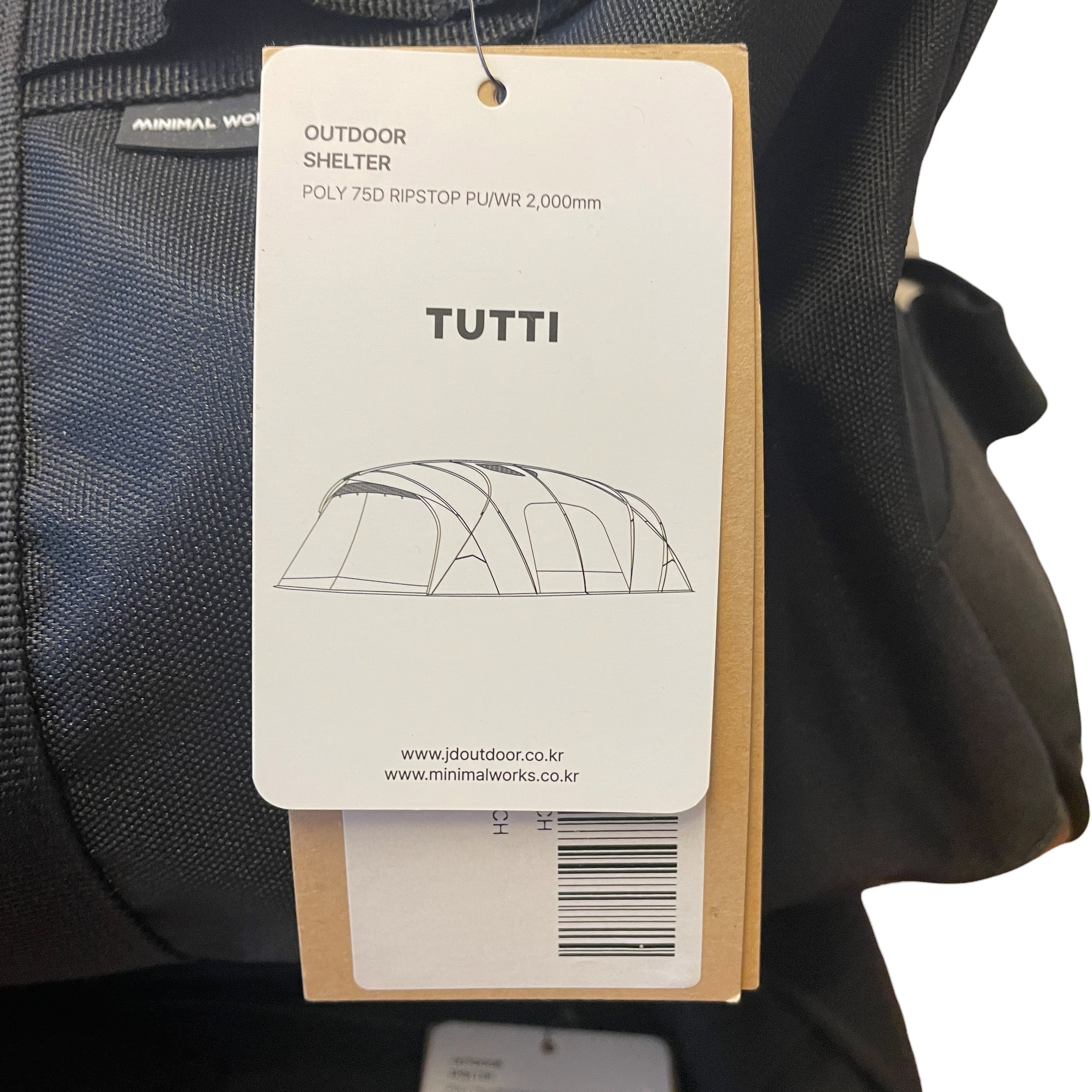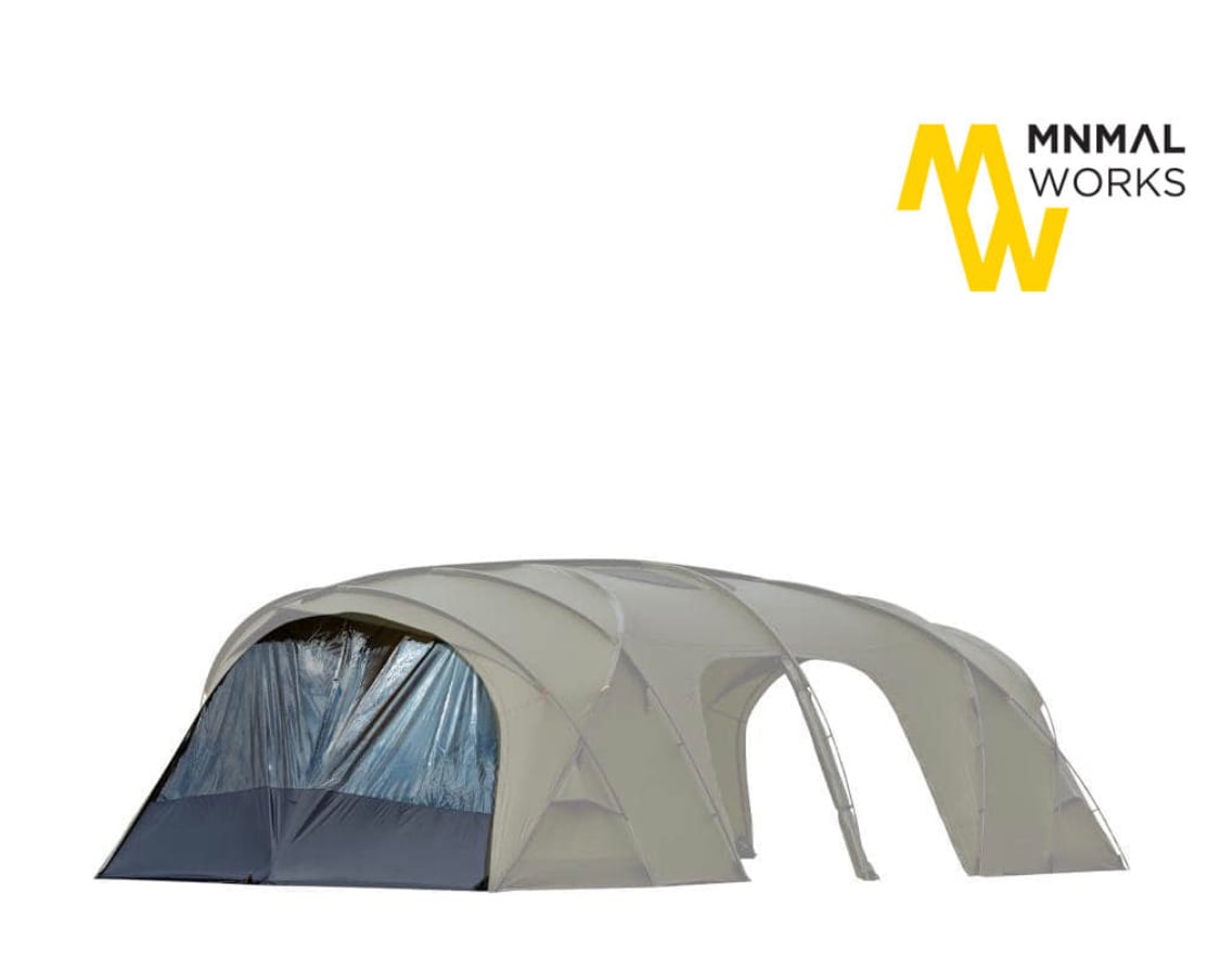 ミニマルワークスのベストセラーであるAGORAとV HOUSEをつないだTUTTIは、 前/後面の開放感と高い天井の空間を持ち合わせ、大人数を収容できる7.6mの大型リビングテントです。